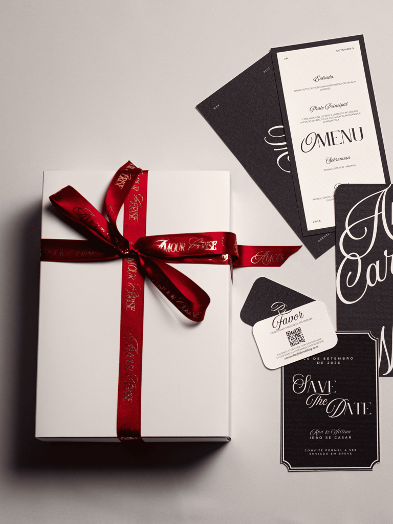 Foi então que nasceu a Amour Cerise: uma maison de convites de casamento sob medida, feita para casais que não se contentam com o comum.